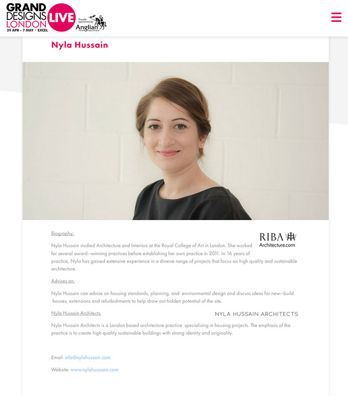 Nyla Hussain will be sharing her expertise this year's Grand Designs Live show.