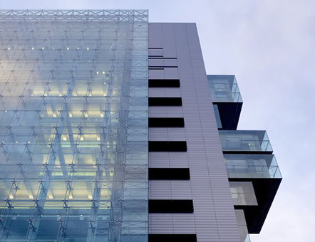 Manchester Civil Justice Centre is an award winning building for 50 courtrooms, using low energy environmental principals such as solar shading and natural ventilation that have informed its unique appearance. The building is broken into three linear elements each representing a distinct function, courtrooms, core and public space. The elevated projecting boxes enclose courtrooms while the main facade is expressed by solar screening to the courtroom corridors. Due to its high sustainable design, the building has achieved a BREEAM rating of excellent.