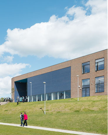 The site is located on an existing school playground. The new-build secondary school accommodates 800 students. However, the ‘schools within a school‘ model gives a sense of a smaller school environment. The building is laid out with 4 school clusters off a central heart space maximising views and light into each space. Each school is designed with its own strong identity in response to the student preference.